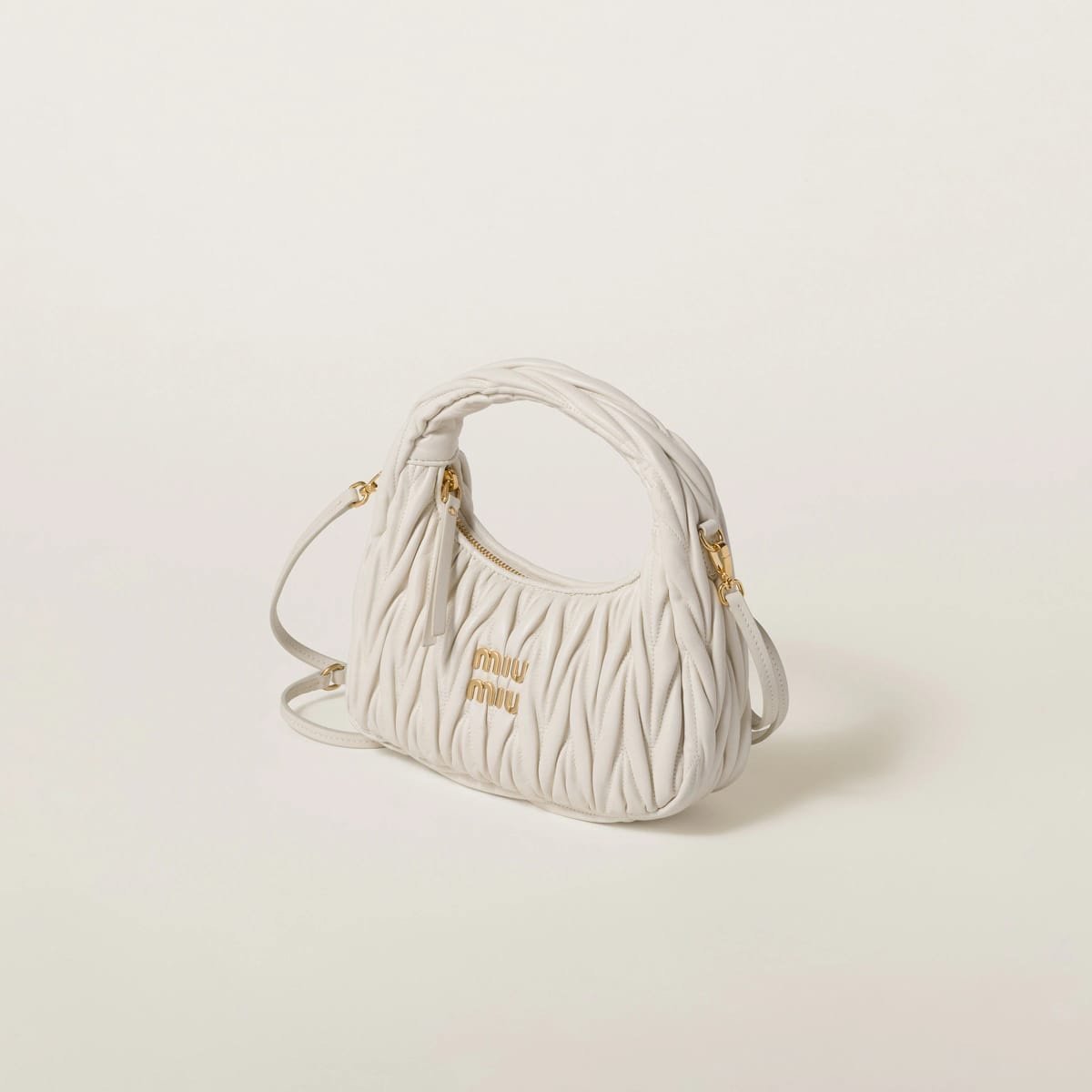 *Miu Miu Wander Matelass Nappa Leather Hobo Bag With OG Box Dust Bag (2178 Beige)*π€π―