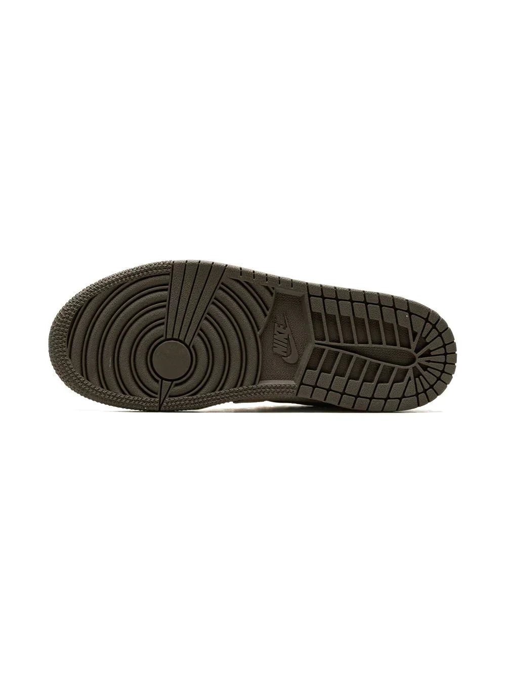 x Travis Scott Air Jordan 1 Retro Low OG SP sneakers from Jordan Kids featuring brown, off-white, red, leather, panelled design, signature Swoosh logo detail, branded heel counter, logo patch at the tongue, perforated, round toe, front lace-up fastening, rubber sole and signature Air cushioning. These styles are supplied by a premium sneaker marketplace. Stocking only the most sought-after footwear, they source and curate some of the most hard to find sneakers from around the world..